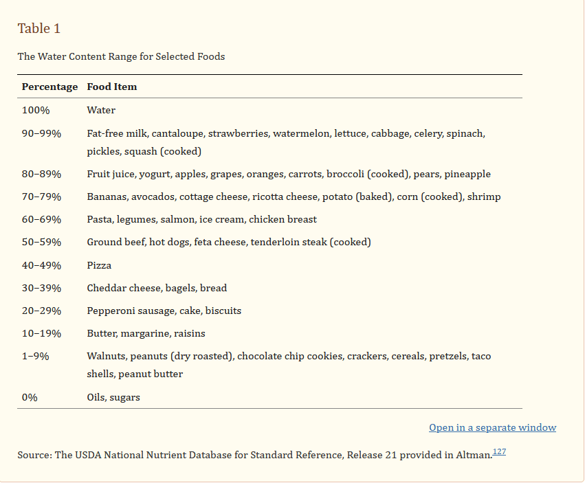 Kidney’s play the most crucial role in the excretion of toxins and regulation of water capacity. A research study showed how specific foods from the USDA contain different percentages of water. Where 20% of our water intake comes from the foods we eat.